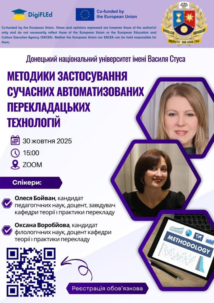 Шановні представники академічної спільноти, студенти та всі, хто цікавиться сучасною освітою й цифровими технологіями! Маємо честь запросити вас до участі у вебінарі, що відбудеться в межах освітнього проєкту Erasmus+ DigiFLEd https://digifled.eu Тема вебінару: Методики застосування сучасних автоматизованих перекладацьких технологій Дата Читати далі